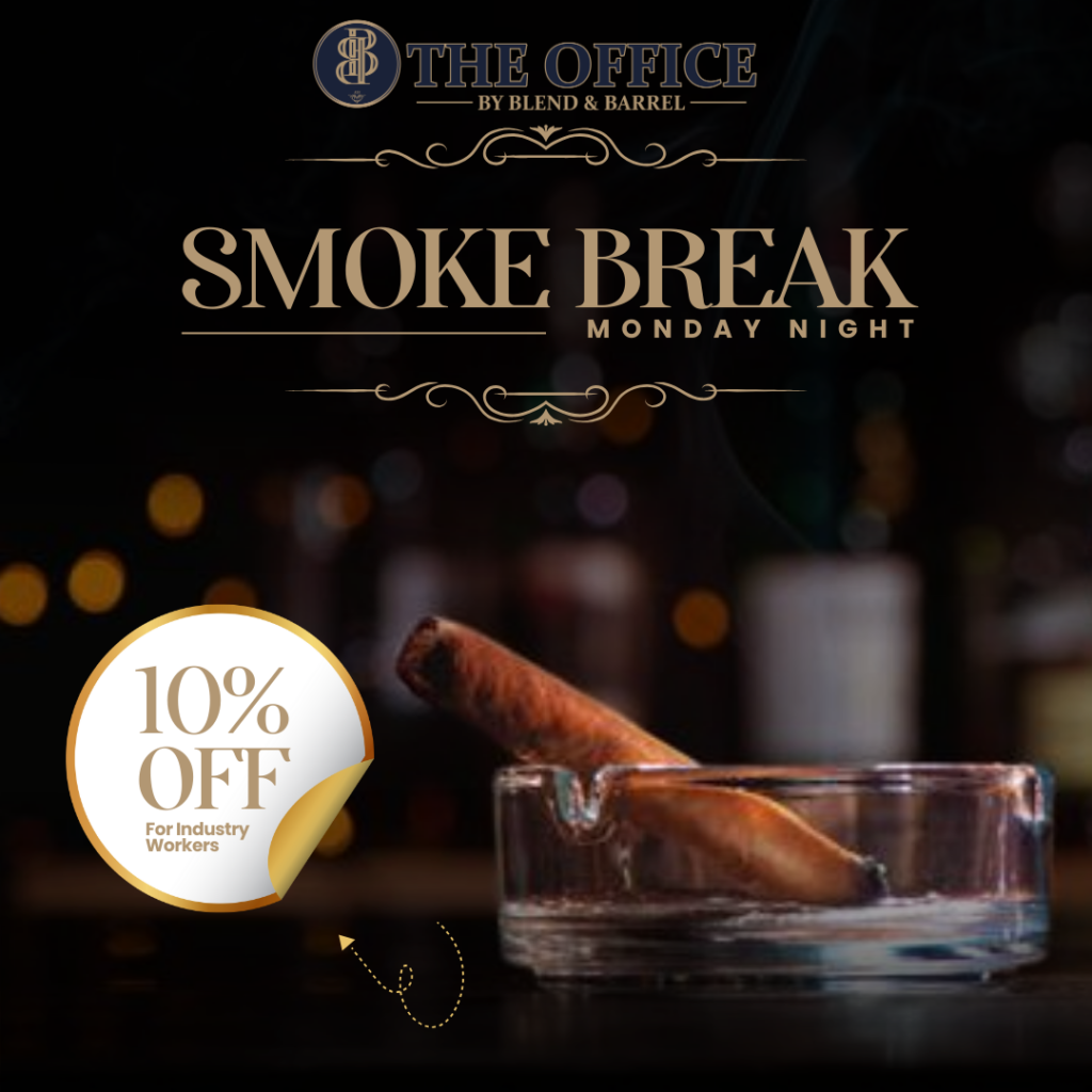 Kickstart your week with a touch of indulgence at The Office during our exclusive “Smoke Break Monday.” Every Monday, from 11 AM to 10:30 PM, we invite industry professionals to enjoy a well-deserved break with a special 10% discount on all cigars and whiskey.