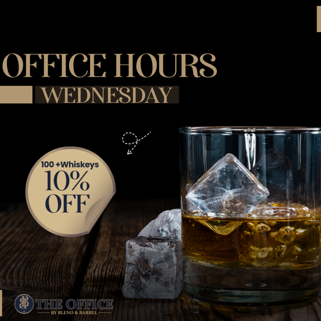 Unwind in style every Wednesday at The Office during our “Office Hours” 10% off whiskey . From 11 AM to 10:30 PM, step into a world where midweek stresses melt away and the pursuit of the perfect pour takes center stage.